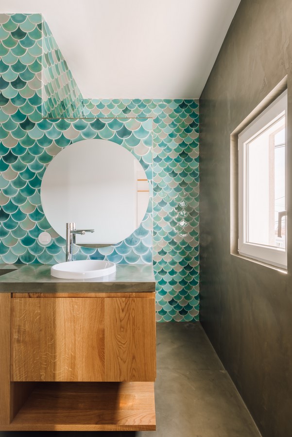 In the selection of finishes and materials, an effort was made to reproduce the tones and textures of the vegetation found outdoors, prioritizing natural and traditional materials, such as brushed oak flooring, polished cement, and glazed Portuguese ceramics.